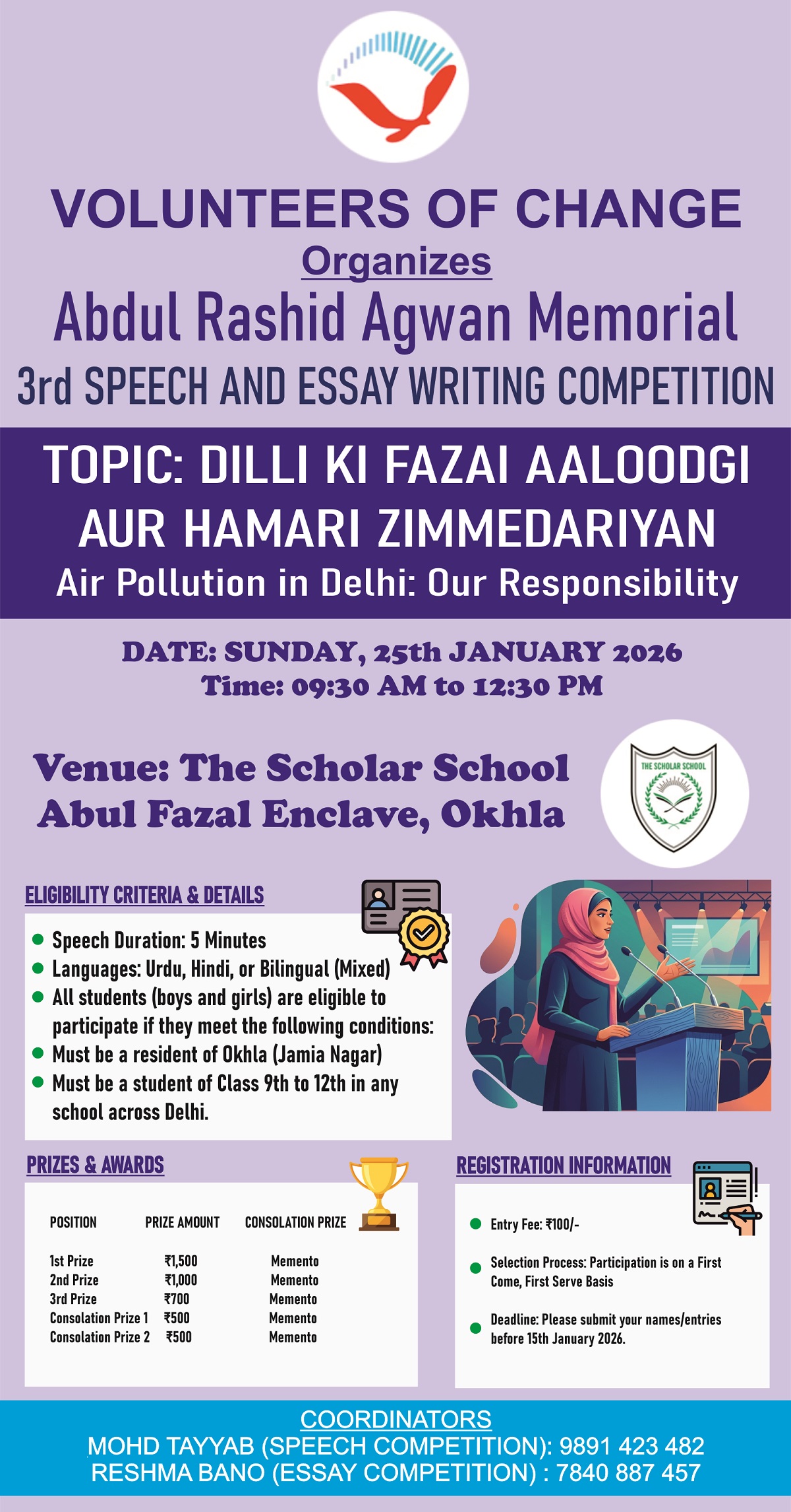 3rd Dr Abdul Rashid Agwan Memorial Speech & Essay Writing Competition25th January 2026Venue: The Scholar School, Abul Fazal Enclave, Jamia Nagar Gallery Post navigation3rd Dr Abdul Rashid Agwan Memorial Speech & Essay Writing Competition